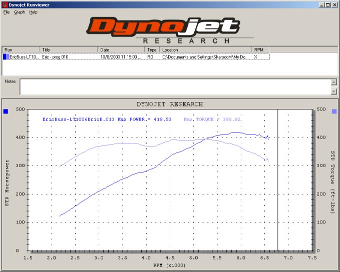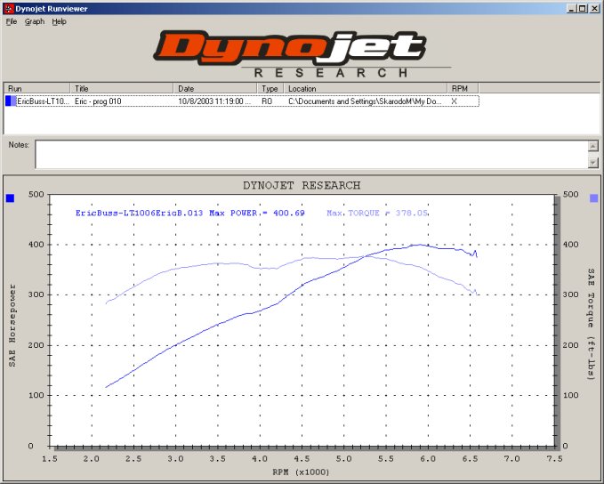 his dyno sheet. SAE corrected, the numbers were still 405 rwhp